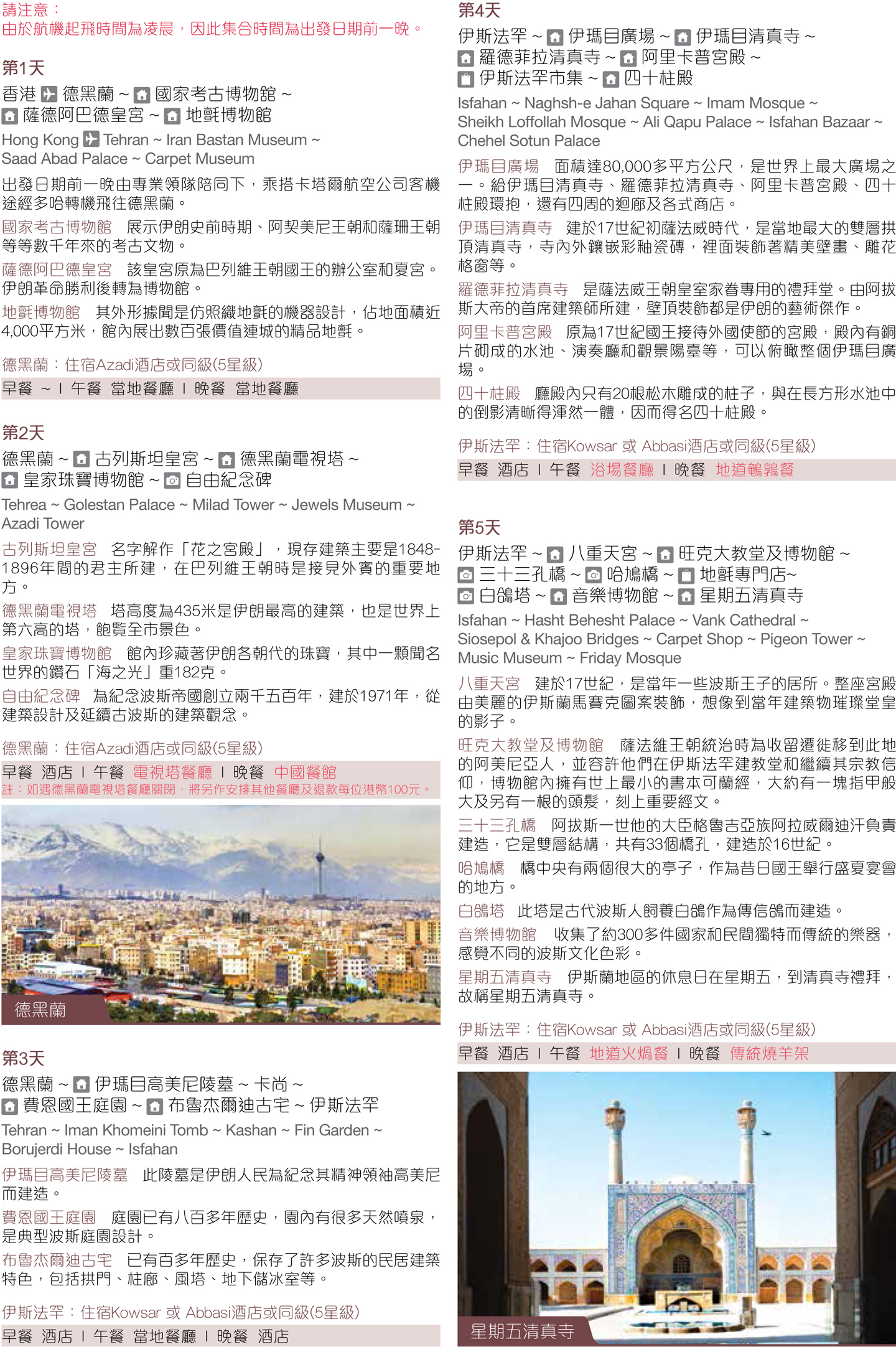 5. 膳食-在不損害「本公司」及其他代理人在發生突發或無法預料事件情況下有權替換行程內之項目下,顧客將獲安排旅程表內所列或同類食肆。